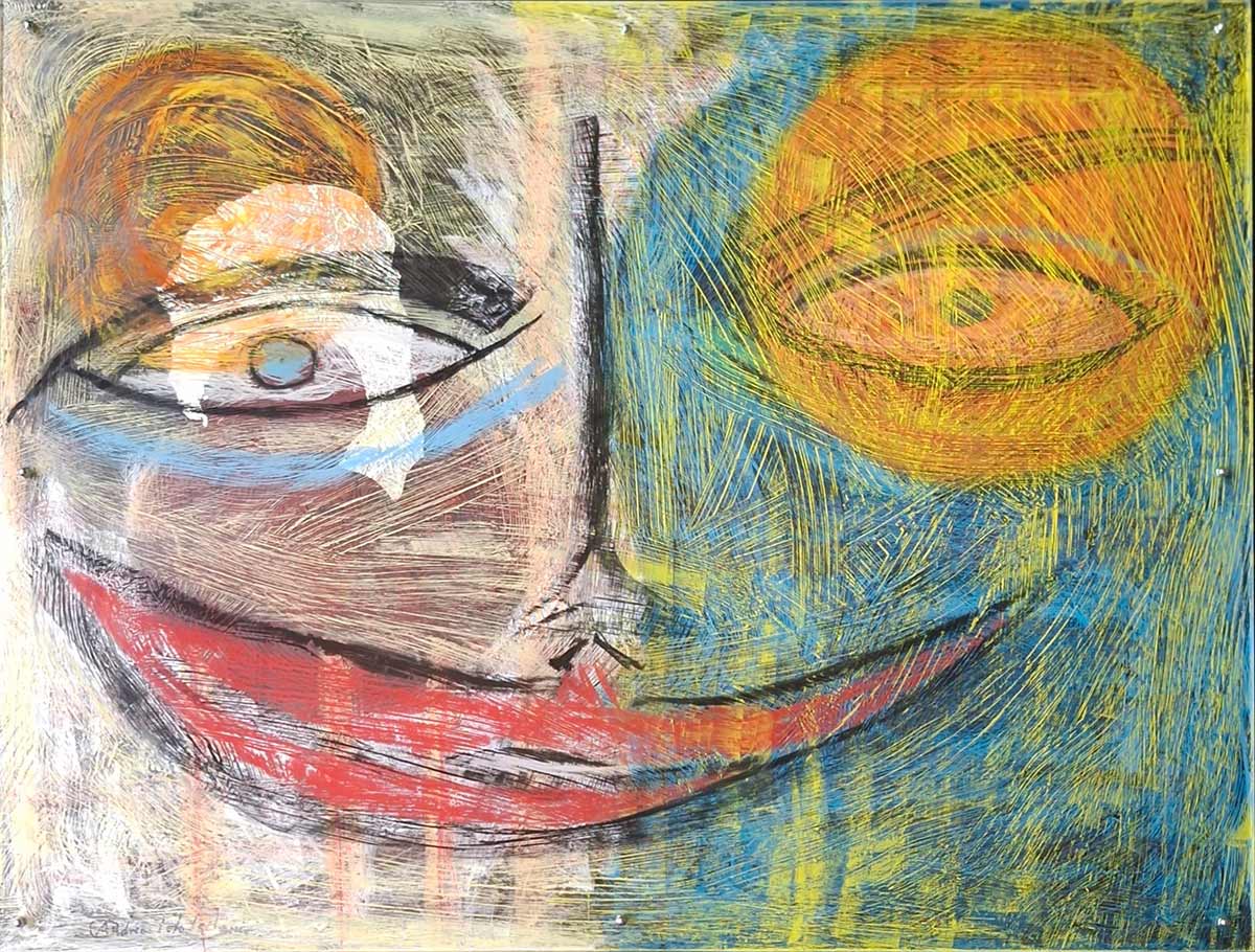 Papier aluminium, crayon gras, peinture acrylique incolor